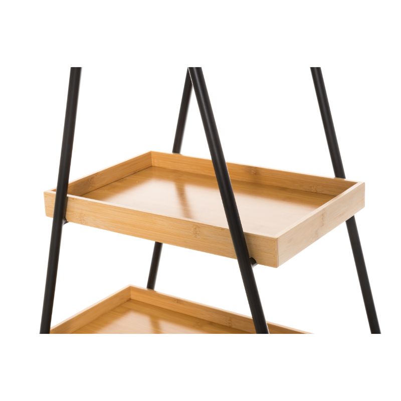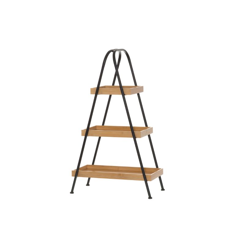 Mustan metallin ja luonnollisen bambun yhdistelmä on tyylikäs ja raikas. Hyllyn kolme eri kokoista tasoa tarjoavat mahdollisuuden leikitellä esineiden sijoittelulla ja hyllyyn voi rakentaa vaikka upean asetelman viherkasveista ja kauniista esineistä.