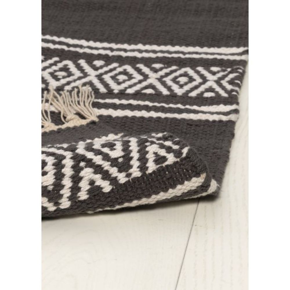 Olli puuvillamatto sopii kaikkiin kodin tiloihin. Matossa valkoinen raidoitus ja hapsut.