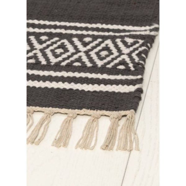 Olli puuvillamatto sopii kaikkiin kodin tiloihin. Matossa valkoinen raidoitus ja hapsut.