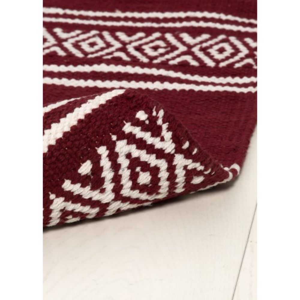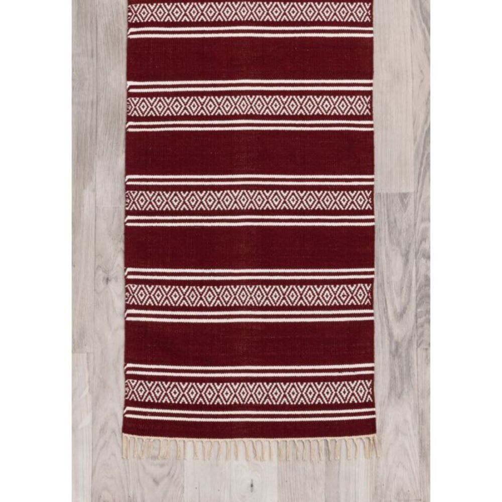Olli puuvillamatto sopii kaikkiin kodin tiloihin. Matossa valkoinen raidoitus ja hapsut.
