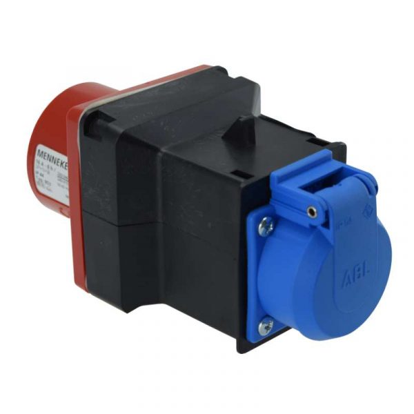 Adapteri 5-napaisen voimavirtapistorasian muuntamiseksi 1-vaiheiseksi Schuko-pistorasiaksi.