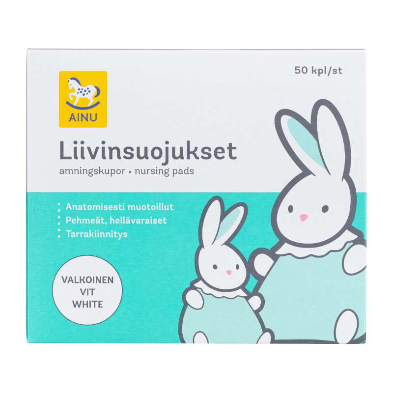 Ainu Liivinsuojukset ovat miellyttävät käyttää. Liivinsuojien pehmeä vanu suojaa hiertymiltä ja tahroilta imetysaikana. Imetysten välissä rinnasta tihkuva maito imeytyy välikerroksen erikoisvanuun. Ainu Liivinsuojuksen uloin vanukerros on käsitelty erittäin pitäväksi, ettei maito pääse vaatteisiin asti. Ainu Liivinsuojukset sopivat kaikkiin rintaliiveihin.