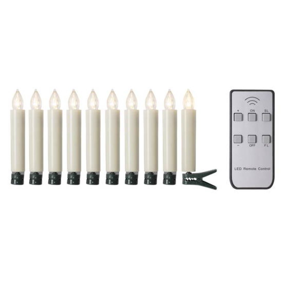 Setti irrallisia, johdottomia paristotoimisia kuusenkynttilöitä, joita voidaan ohjata kaukosäätimellä. Kaukosäätimellä voi säätää valon voimakkuutta ja liekkitoimintoa ja kaukosäätimen ajastintoiminnolla kynttilät syttyvät automaattisesti. Kynttilät sopii sisäkäyttöön sekä ulkona käytettäväksi katetussa tilassa.