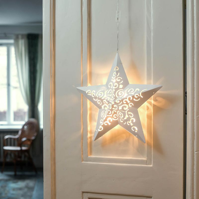Lämmin, tyylikäs metallitähti, joka on valaistu tunnelmallisella LED-valosarjalla. Kirkas johto on 5 metriä pitkä, joten tähden voi helposti ripustaa mieleiseen paikkaan. Itse tähti on halkaisijaltaan 30 cm.
