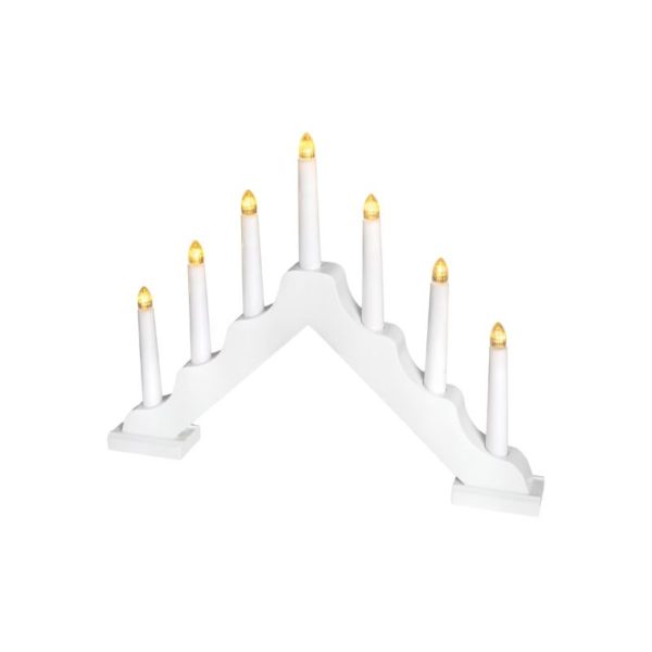 Maalattua puuta. 7 kpl lämpimän keltaisia ledejä, ei vaihdettavia.