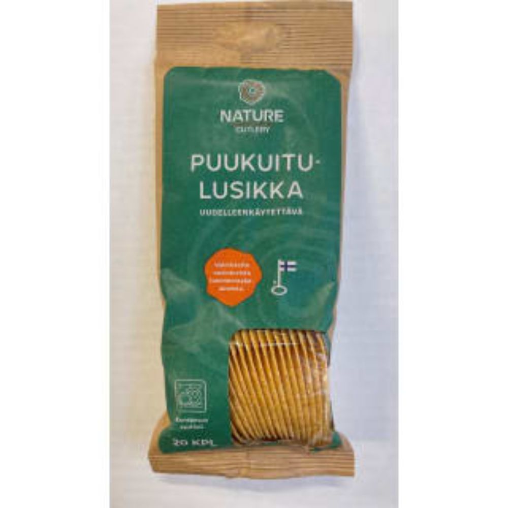 Nature Line puukuituruokalusikka on uudelleenkäytettävä ja konepestävä. Tuote kestää lämpöä +100 astetta.