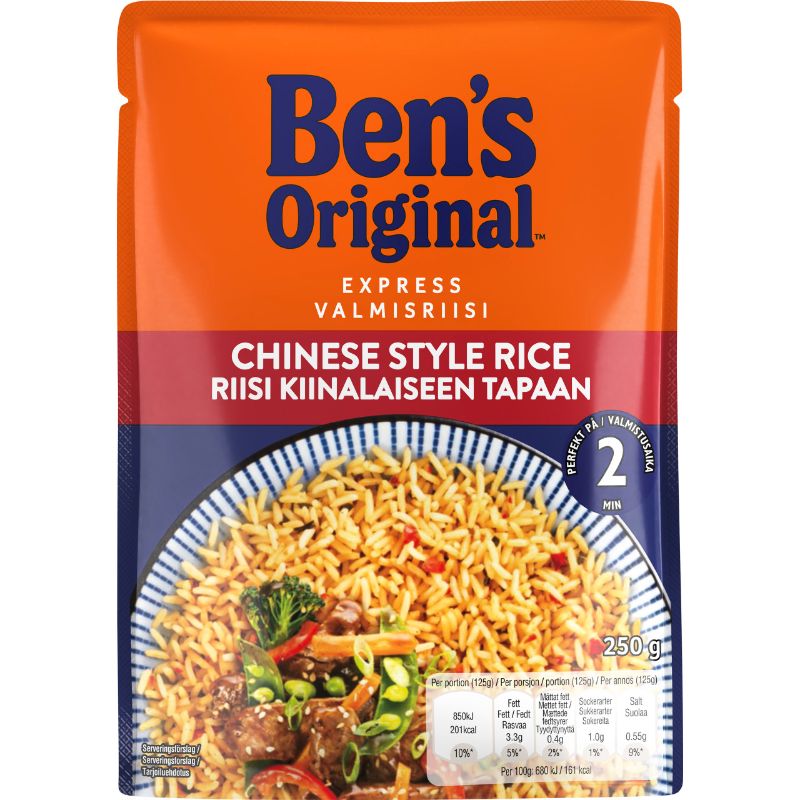 Kiinalaistyylinen Ben’s Original -valmisriisi on valmistettu Ben’s Original -ammattitaidolla. Se sisältää parboil-keitettyä riisiä höystettynä huolella valikoiduilla tomaatin ja paprikan paloilla.