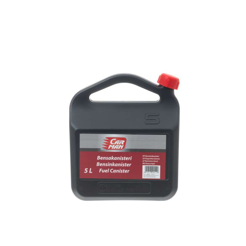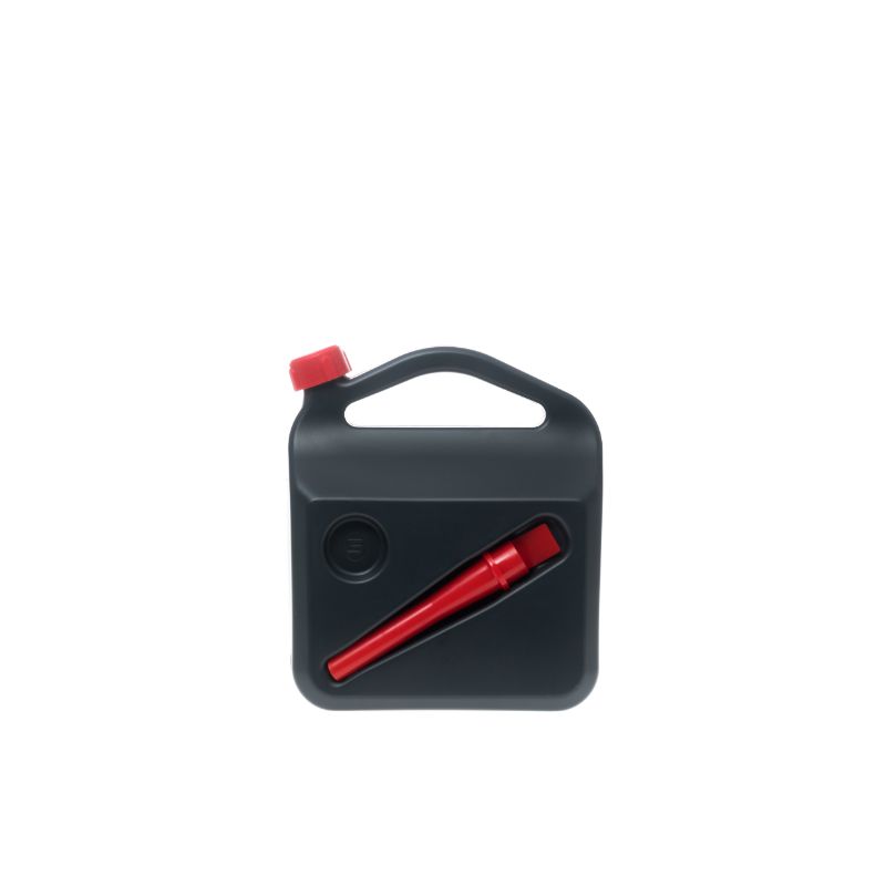 - Antrasiitinharmaa kanisteri, punainen kaatonokka ja korkki.