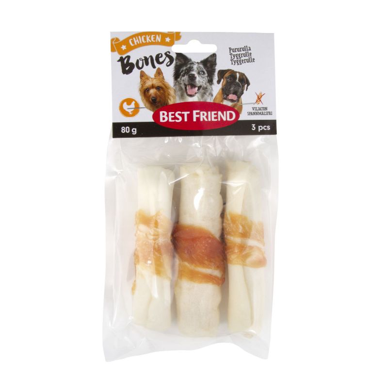 Käyttö: Kaikille koirille sopiva pururulla kanafileellä. Varmista että koiralla on aina raikasta vettä tarjolla. Muista valvoa koiraasi aina kun sillä on purutuote.