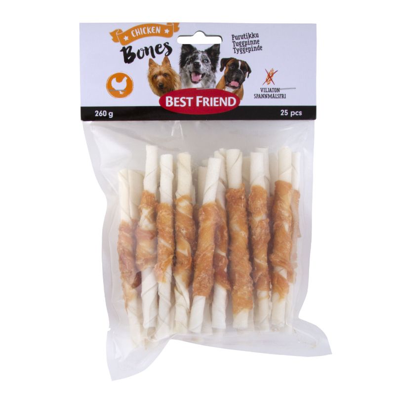 Best Friend Bones maistuvien purutikkujen ympärillä on herkullista kuivattua kananfileetä.