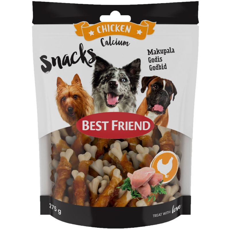 Kasvipohjaiset luunmalliset kalsium makupalat kanafileellä. Vähentää hammaskiveä ja pahanhajuista hengitystä!