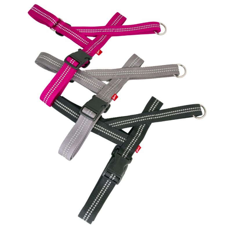 - Säädettävillä rinta- ja vatsaremmeillä valjaiden istuvuuden voi säätää koiralle sopivaksi