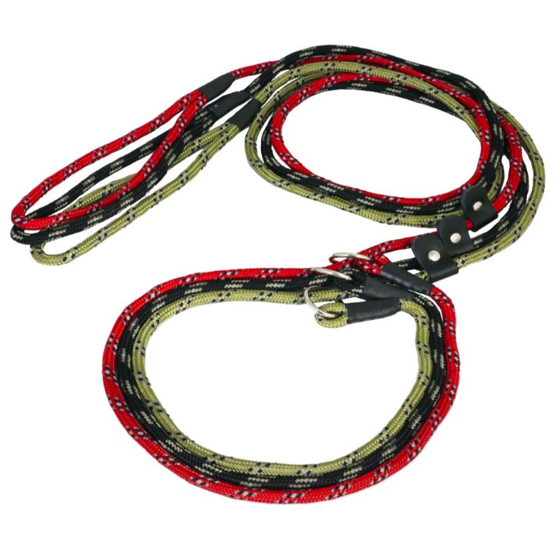 - Taluttimen toisessa päässä on lenkki ja stoppari, jonka avulla lenkki säädetään koiran kaulaan sopivaksi.
