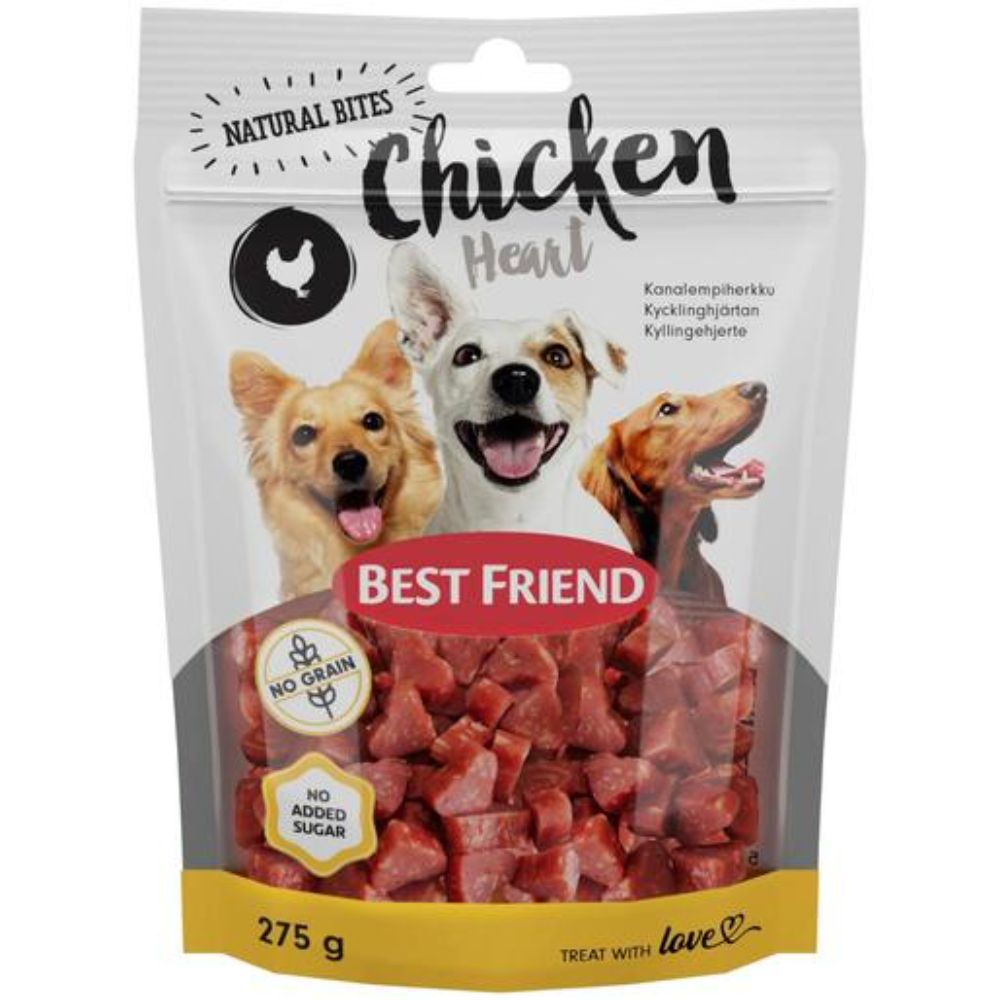 Best Friend Natural Bites Kanalempiherkku 275G on maistuva ja runsaasti kanaa sisältävä suloinen suupala! Sydämen muotoinen herkku sopii hyvin kaikille aikuisille koirille. Herkullisen maun ja koon ansiosta tämä koiranherkku sopii myös mainiosti koulutusnamiksi. Kanalempiherkun viljaton koostumus sisältää runsaasti proteiinia ja aitoa kanaa. Turska tuo herkkuun lisää maistuvuutta ja hyviä rasvoja. Makupalat eivät sisällä sokeria tai soijaa.