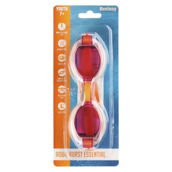 UV-suojatut polykarbonaattilinssit. Ei sisällä lateksia. Pehmeät, hyvin istuvat silmäkupit. Silikoninen säädettävä, joustava päähihna ja nenäsilta. Ikäsuositus 7+.