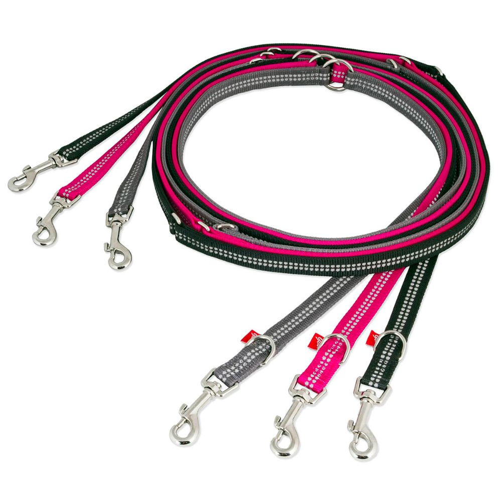 Heijastimella varustettu koiran talutushihna monipuoliseen ulkoiluun, niin kaupunkiympäristössä kuin metsässä ja poluilla. Leveän monitoimitaluttimen pituus on helposti säädettävissä metallilenkkien ja hihnan molemmissa päissä olevien lukkojen avulla. Talutushihna on varustettu pitkällä heijastinnauhalla, joka tuo lisää näkyvyyttä ulkoiluun ja hämärällä lenkkeilyyn. Likaa hylkivästä materiaalista valmistettu monitoimitalutin on pituudeltaan kome metriä ja leveydeltään 30 mm. Talutushihnassa on vaihtuva värilajitelma, joten hihna toimitetaan varastotilanteen mukaan.