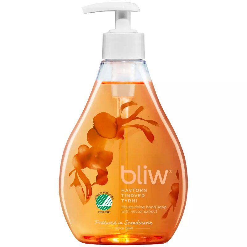 Bliw Tyrni -nestesaippuan mieto koostumus sopii koko perheelle! Kosteuttava ja hoitava koostumus sisältää nektariuutetta ja mineraaleja, jotka auttavat ylläpitämään ihon kosteustasapainoa. Bliwin täyteläinen vaahto on miellyttävän tuntuinen iholla ja pesee kädet hellävaraisesti. Bliw -nestesaippuoiden pH-arvo on iholle neutraali. Nestesaippuassa on ihastuttava tyrnin tuoksu, joka on saanut inspiraatioita pohjoisesta luonnostamme.