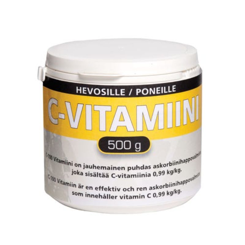- C-Vitamiinijauhe hevosille, jauhemaista puhdasta askorbiinihappoa.