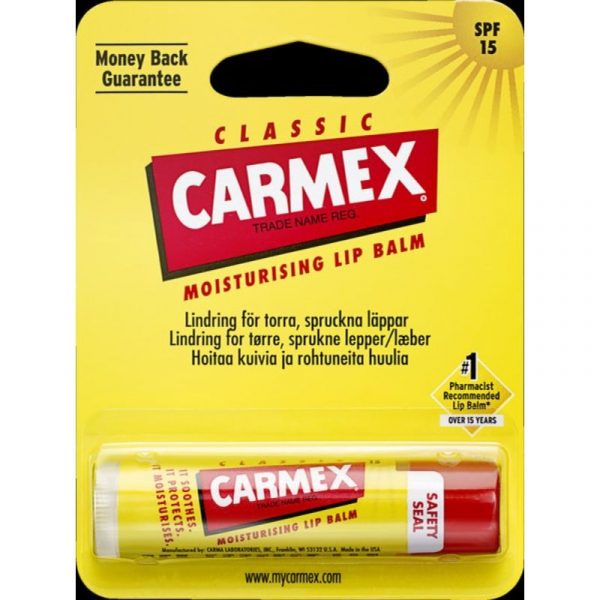 Carmex on yksi maailman myydyimmistä huulivoiteista – ja vuonna 2015 jo 17 vuotta peräkkäin USA:n farmaseuttien parhaaksi valitsema tuote kategoriassaan. Carmex hoitaa, viilentää ja rauhoittaa. Carmex antaa suojan tuulta ja pakkasta vastaan. Ehdoton tuote laskettelurinteeseen, ulkoiluun – ja tietenkin ihan jokapäiväiseen käyttöön. Carmex viilentää ja kosteuttaa tehokkaasti, ja sillä on antiseptinen vaikutus.