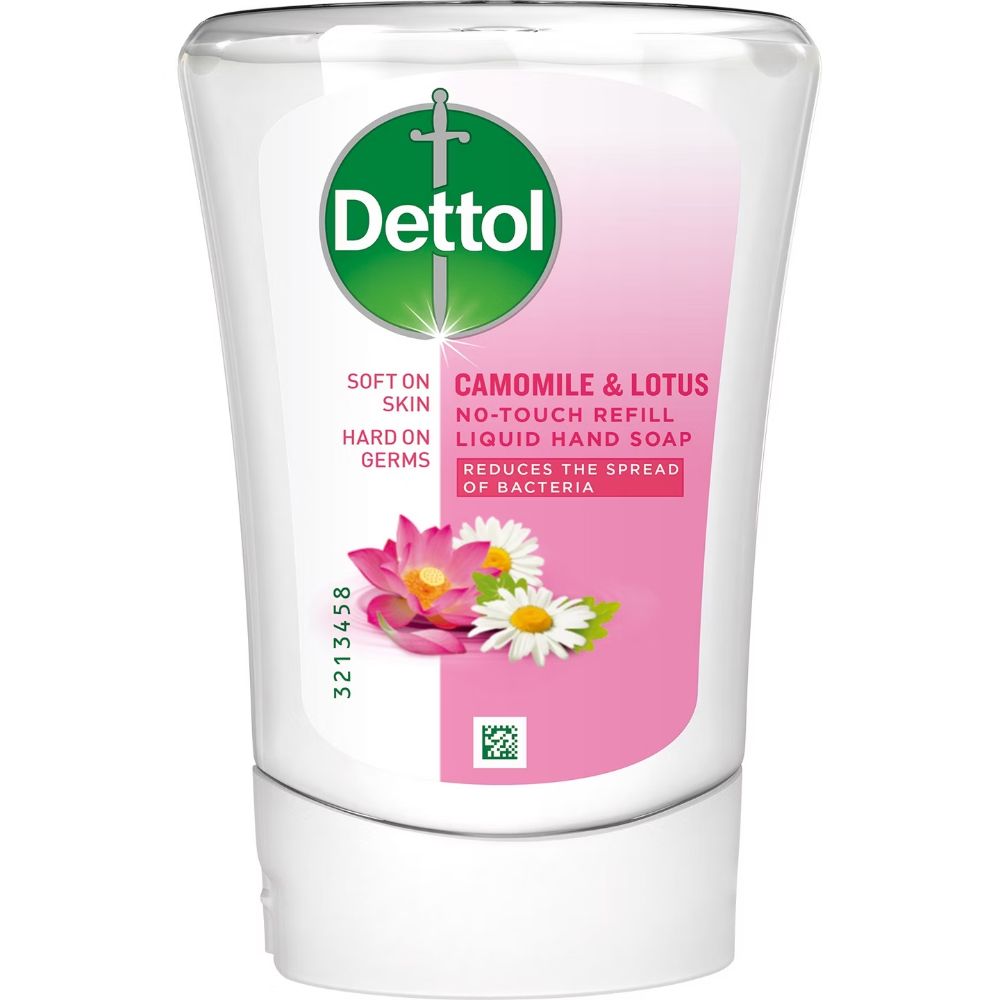 Dettol No Touch ‑käsisaippuan täyttöpakkaus – hellävarainen iholle mutta ankara bakteereille. Hoitavan ja bakteereilta suojaavan saippuan avulla koko perheen kädet pysyvät terveinä. Saippuan koostumus pesee bakteerit tehokkaasti pois, mutta hoitaa samalla ihoa.