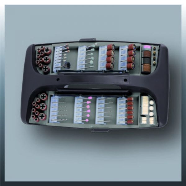 Minihiomakoneessa on taipuisa akseli, jonka avulla on mahdollista työstää työkappaleen eri kohtia osia taitavasti ja helposti. Teleskooppijalustan ja siihen kuuluvan koukun ansiosta työkalu on myös helppo kiinnittää työskentelyn aikana. Softgrip-pinnan ja ergonomisen rakenteen ansiosta laite istuu hyvin käteen. Toimitukseen sisältyy myös kattava 189-osainen tarvikesarja hiontaan, poraukseen, jyrsintään ja paljoon muuhunkin, ja kaikki on kätevästi säilytyssalkussa.