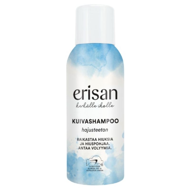 Erisan kuivashampoo raikastaa hiuksia ja hiuspohjaa. Antaa volyymia, muotoiltavuutta ja kevyttä pitoa päänahkaa ärsyttämättä. Hienojakoinen koostumus sopii myös tummille hiuksille. Poistaa sähköisyyttä ja antaa kampauksille kestävän pohjan. Tuote ei sisällä hajusteita, väriaineita tai silikoneja.