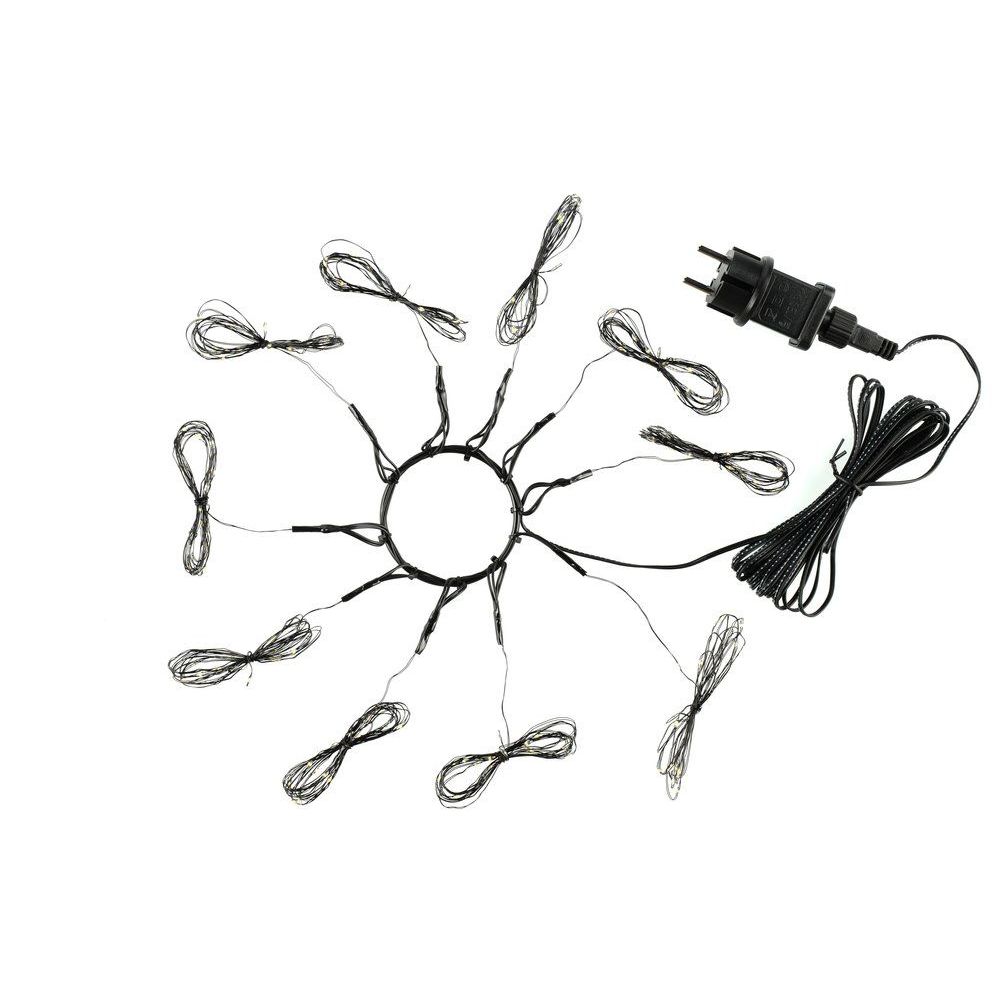 Jokaisessa valoketjussa 20 kpl lämmin valkoista micro LED-valoa ohuessa mustassa kuparilangassa.