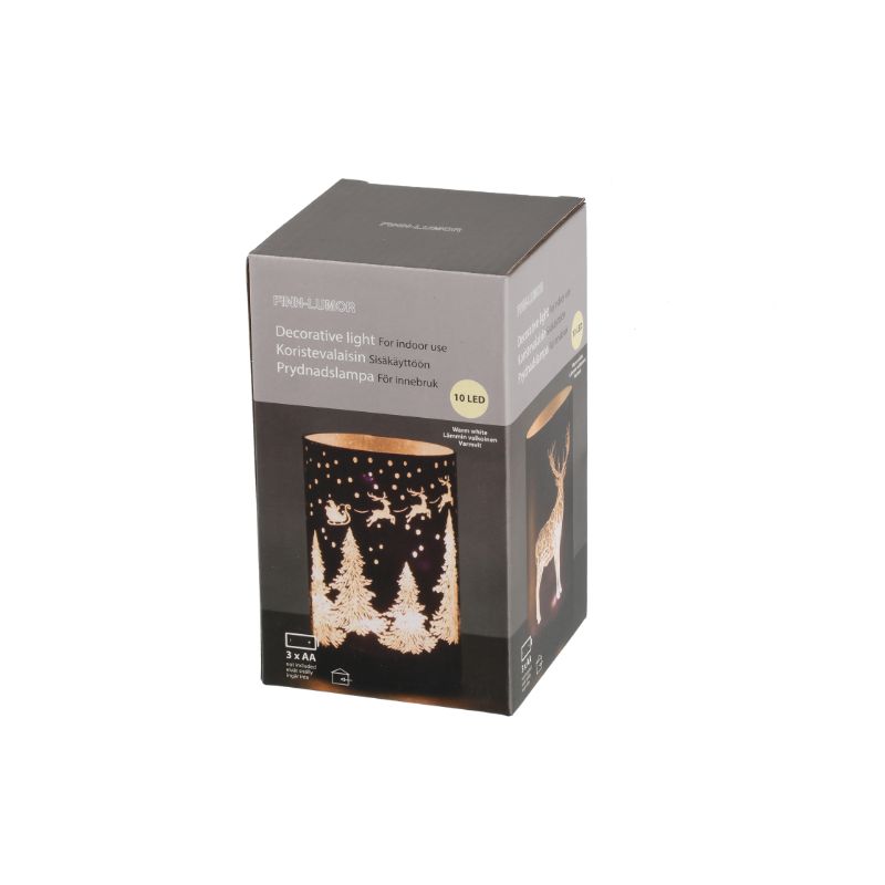 Musta lasinen koristevalaisin hopealla sisäpinnalla.