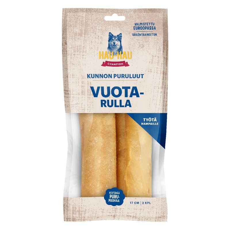 Hau-Haun Kunnon puruluut ovat täysin viljattomia ja vähärasvaisia puruluita, jotka on valmistettu ilman säilöntäaineita. Vuotarullan lisäksi voit valita koirallesi erimakuisia rouhepatukoita, hammashoitoluun sekä kestäviä täyteluita ja vuotapatukoita. Osta testiin vaikka useampi pakkaus, sillä kaikilla Hau-Haun tuotteilla on 100 % tyytyväisyystakuu!