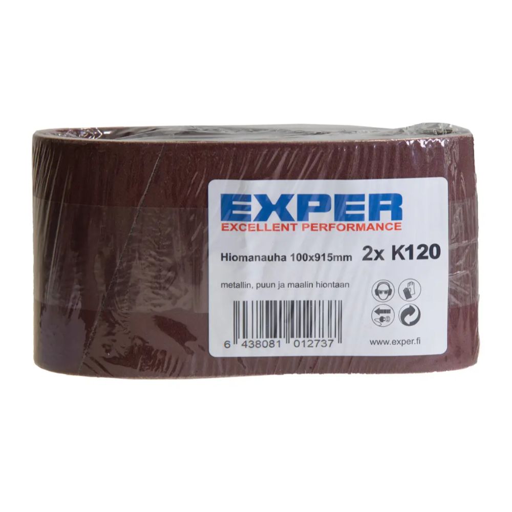 Leveys 100 mm ja pituus 915 mm, karkeus 120. Hioma-aine alumiinioksidi. Selkämateriaali puuvillakangas. Sopii metallin, puun ja maalin hiontaan. Pakkaus sisältää 2 kpl hiomanauhoja nauhahiomakoneeseen.