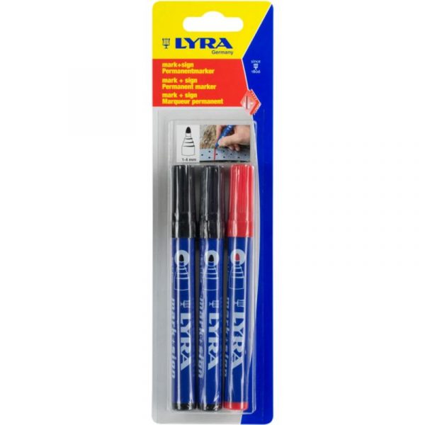 - Pakkauksessa 2 mustaa ja 1 punainen tussi.