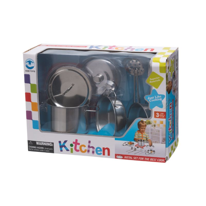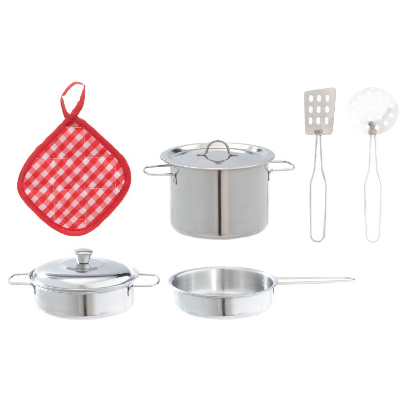 Sisältää 1 kpl kattila, 2 kpl kasari (+kannet) sekä reikäkauha, pannulappu ja lasta.