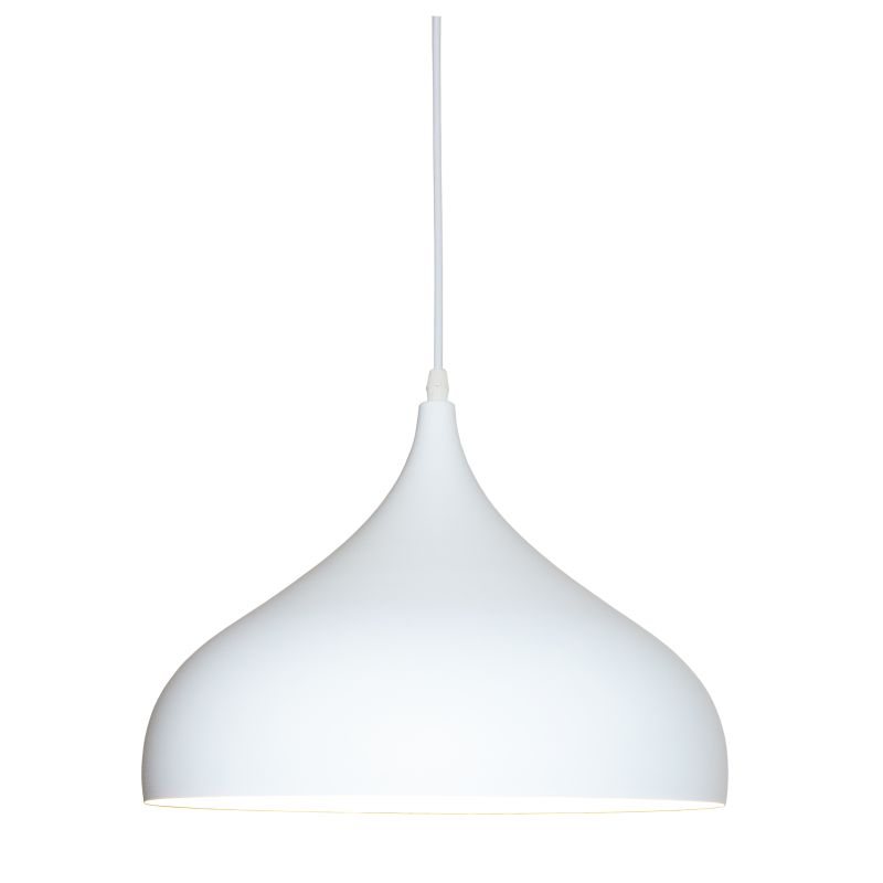 Harjun DROP-ripustusvalaisin on pelkistetyn linjakas ja näyttävä kattovalaisin skandinaaviseen sisustukseen. Valaisimen halkaisija 320 mm. Väri mattavalkoinen. Valkoinen ripustusjohto ja kattokuppi sisältyvät, valonlähde ei.