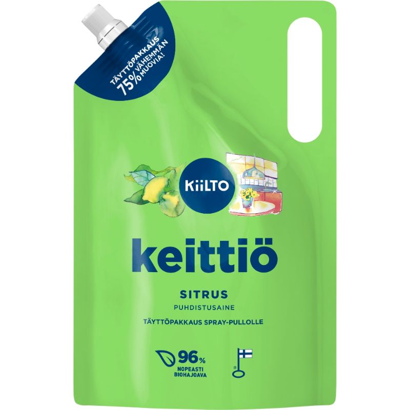 Kiilto Keittiöpuhdistaja Täyttöpussi on täyttöpakkaus Kiilto Keittiöpuhdistaja Spray-tuotteelle. Tuote on tehokas puhdistusaine liedelle – myös keraamiselle, kaakeleille, pöydille, kaapinoville, tiskialtaille, hanoille.