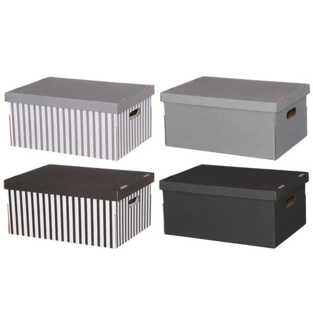 Kotilaatikko Raita on ohut, kartonkilaatikko erilaisiin säilytyksiin. Pakkaus sisältää 2 kappaletta samanvärisiä kotilaatikoita.