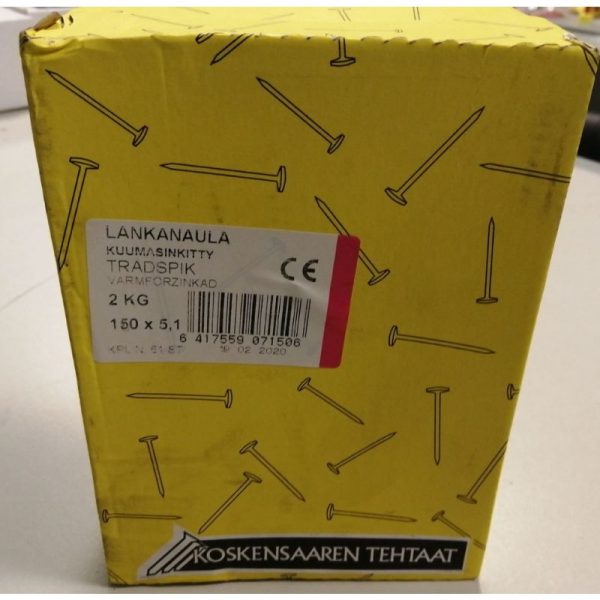 Lankanaula kuumasinkitty 150×5,1mm, 2kg (n. 61kpl). Laadukkaat Koskensaaren Suomalaiset naulat.