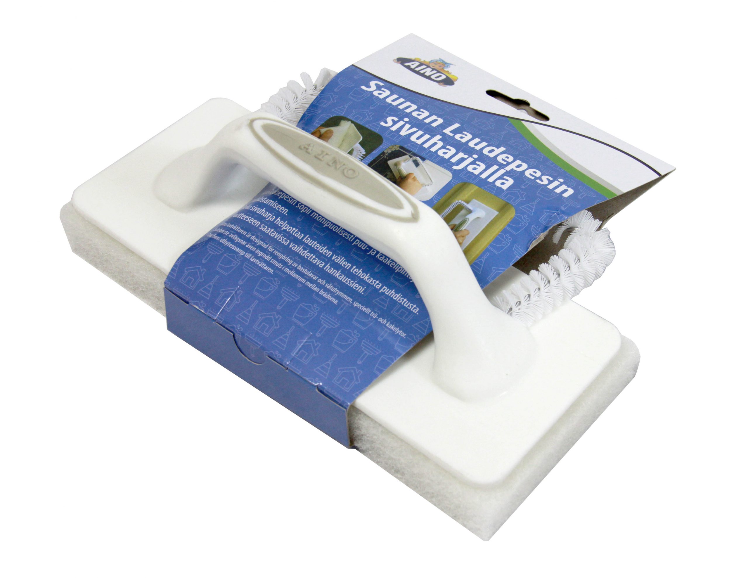 Aino laudepesin sopii monipuolisesti puu- ja kaakelipintojen puhdistamiseen. Tämän siivousvälineen avulla puhdistuu saunan lauteet ja paneelit, sekä suihkutilan tai WC:n kaakelit saumoja myöten. Sivuharjan avulla puhdistuu tehokkaasti myös lauteiden väliin tarttunut lika. Tuotteeseen saatavana vaihdettava hankaussieni.