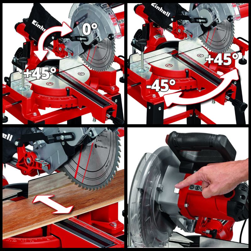 Katkaisujiirisahan kääntöpöytä on varustettu tarkalla ja lukittavalla säätömahdollisuudella. Liukutoiminnon ansiosta katkaisusahalla onnistuu sahata jopa leveydeltään 310mm kappaleita sujuvasti ja tarkasti. Laser takaa nopeat ja tarkat sahaukset ja lisämukavuutta tuo se, että työpisteeltä katsottuna kaikki säädöt ovat hyvin näkyvissä.