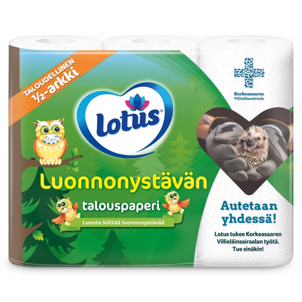 Lotus Luonnonystävän talouspaperin arkkikoko on 1/2-arkki, joten se on myös taloudellinen vaihtoehto.