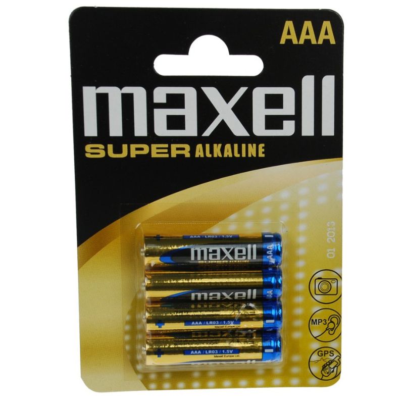 Maxell Super Alkaline AAA-paristo (LR3) on se parempi alkaliparisto. Neljän kappaleen pakkaus.