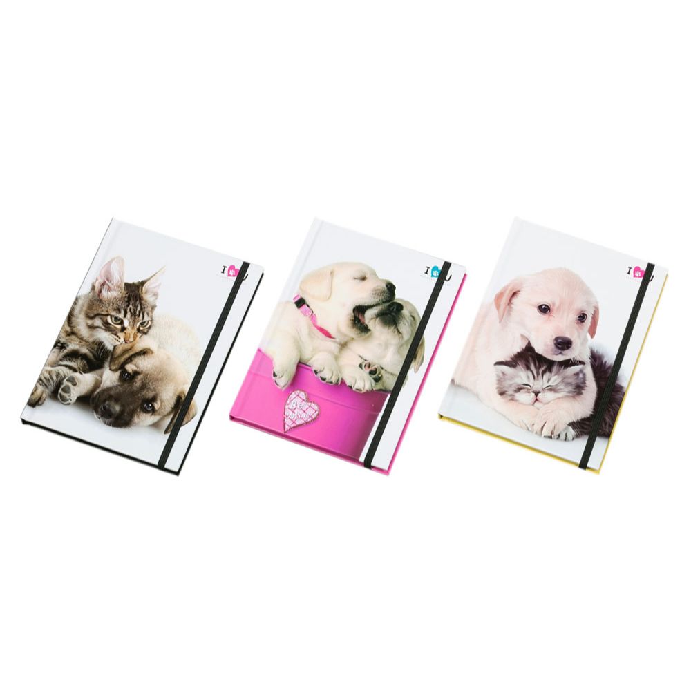 - Muistikirja Kissa ja Koira. 13,5 x 18 cm, kovakantinen, kuminauhalla. 96 sivua, viivoitettu.