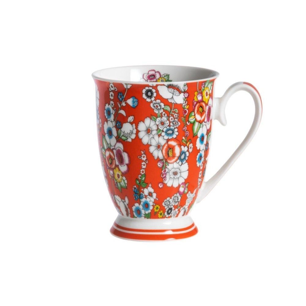 Ihastuttavan värikäs kukkaaiheinen posliinimuki, kaunis muotoilu.