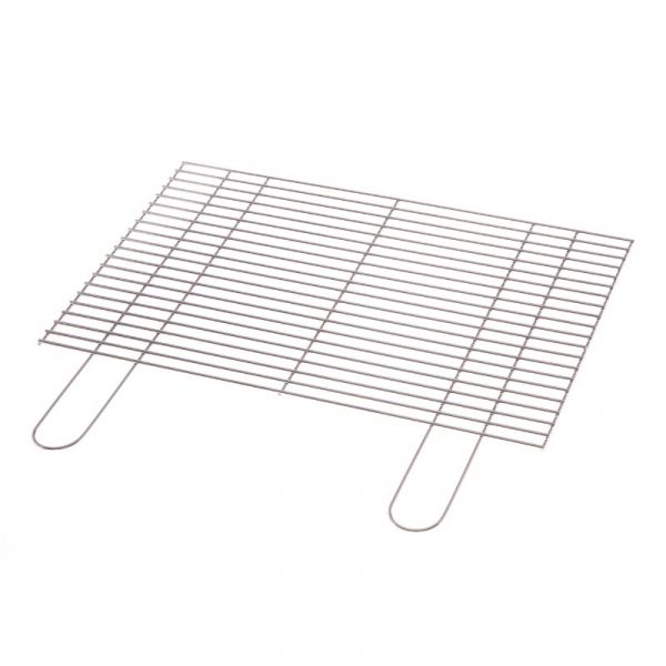 Ruostumattomasta teräksestä valmistettu grilliritilä muurattaviin pihagrilleihin ja tulisijoihin, kahdella kahvalla.