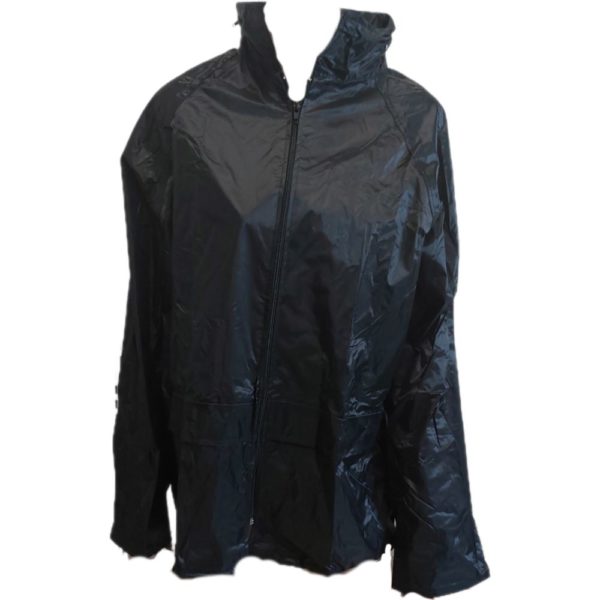 Sadeasusetti jossa takki ja housut veden- ja tuulenpitävää materiaalia. Ohut ja hengittävä verkkokangasvuori. Takissa vetoketju, tuulisuojalista ja huppu sekä kaksi avointa piilotaskua. Housuissa vyötäröllä kuminauha.