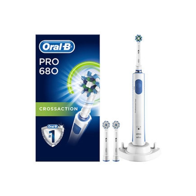 Koe Oral-B Pro 680 – maailmanlaajuisesti hammaslääkäreiden eniten suosittelemalta hammasharjamerkiltä. Pro 680 -sähköhammasharja auttaa ammattimaisen ajastimen avulla harjaamaan kahden minuutin ajan hammaslääkäreiden suosittelemalla tavalla ja muistuttaa 30 sekunnin välein hammasneljänneksen vaihtamisesta. Sinun tarvitsee vain liikuttaa hammasharjaa ympäri suuta; Oral-B:n ainutlaatuinen pyöreä pää huolehtii lopusta. Se poistaa jopa 100 % enemmän plakkia kuin tavallinen käsikäyttöinen hammasharja, jotta saat terveemmät ikenet ja tekee hymystäsi valkoisemman ensimmäisestä päivästä lähtien poistamalla pinnallisia värjäytymiä. Yhdessä ammattimaisen ajastimen kanssa Oral-B Pro 680 on erinomainen valinta sähköhammasharjaa harkitsevalle. Ei ihme, että Oral-B on maailmanlaajuisesti hammaslääkäreiden eniten suosittelema hammasharjamerkki. Yhteensopiva seuraavien harjaspäiden kanssa: CrossAction, 3D White, Sensi Ultrathin, Sensitive Clean, Precision Clean, Floss Action, Tri Zone, Dual Clean, Power Tip, Ortho Care.