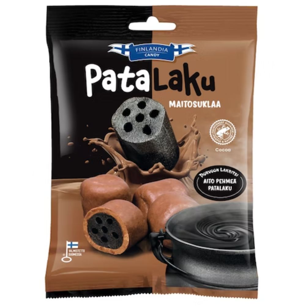 - Perinteinen Porvoon Lakritsi patalaku, joka on kuorrutettu Rainforest Alliance seritifioidulla korkelaatuisella suklaalla.
