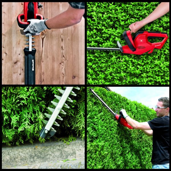 Sähkökäyttöinen Einhellin pensasleikkuri on käytännöllinen ja luotettava laite, josta on paljon apua aitojen ja pensaiden hoidossa. Laserleikatut ja timanttihiotut turvaterät leikkaavat erinomaisesti ja kestävä metallivaihteisto huolehtii tehokkaasta voimansiirrosta. Lisäkahvan ja kevyen painon ansiosta leikkurin käyttäminen on helppoa ja ergonomista.