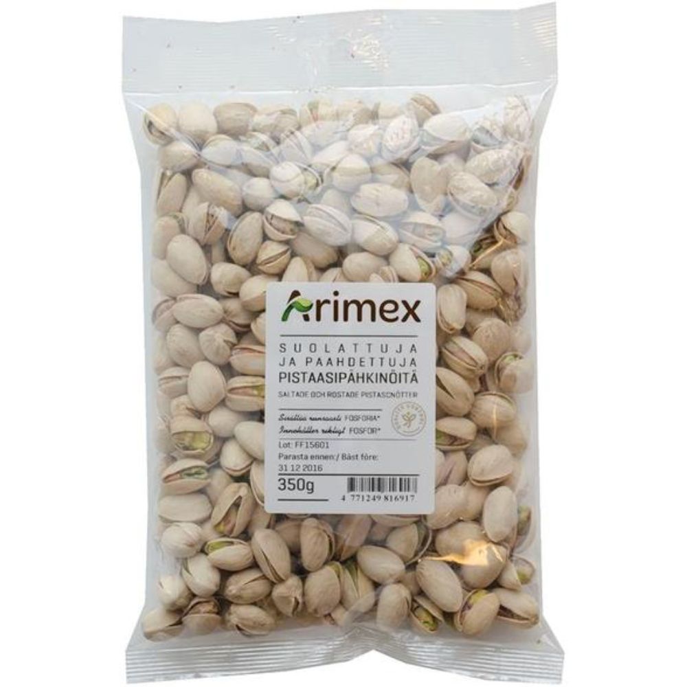 - Paahdettuja ja suolattuja, kuorellisia pistaasipähkinöitä