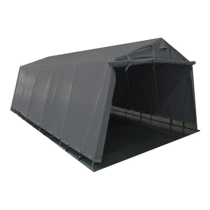 Korkeaan telttamaiseen autotalliin mahtuu isompikin auto ja se antaa täydellisen suojan niin autoille kuin isommillekin puutarhakoneille ja pienkoneille.