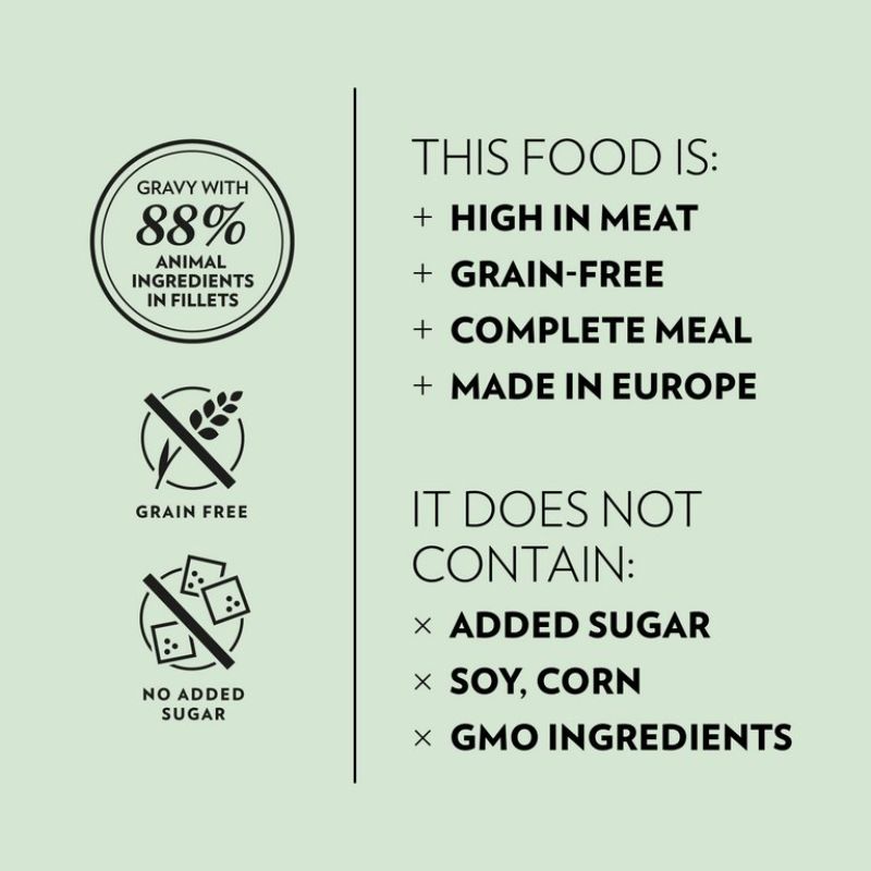 Kissan ruokkiminen on taitolaji, ja maistuvuutta helpottaaksemme kehitimme reseptin, joka on nirsoakin kissaa houkuttelevan lihaisa. Annoksen lihasuikaleet koostuvat 88 %:sti laadukkaista ja hyvin sulavista liha- ja eläinperäisistä raaka-aineista, jotka on muotoiltu nimenomaan kissan suuhun sopiviksi paloiksi.